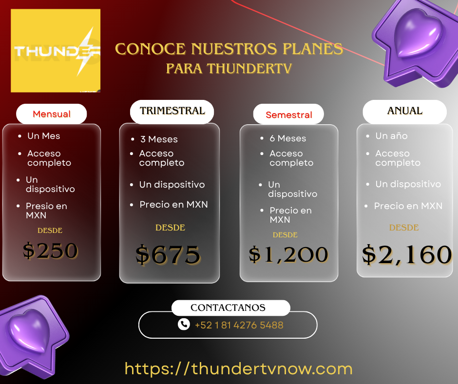 | Thunder TV Panel | Tiempo | Renovaciones | Precio pesos MXN |
